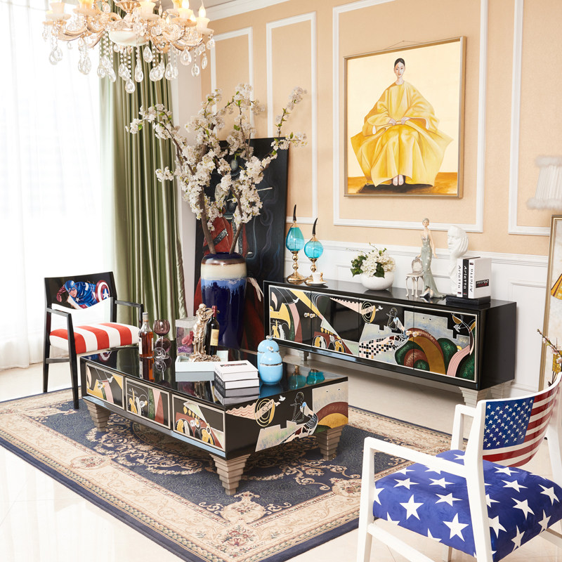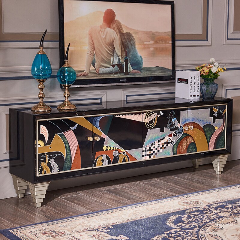 2022 black painted light luxury postmodern fashion personality original living room TV cabinet floor cabinet coffee table combination set