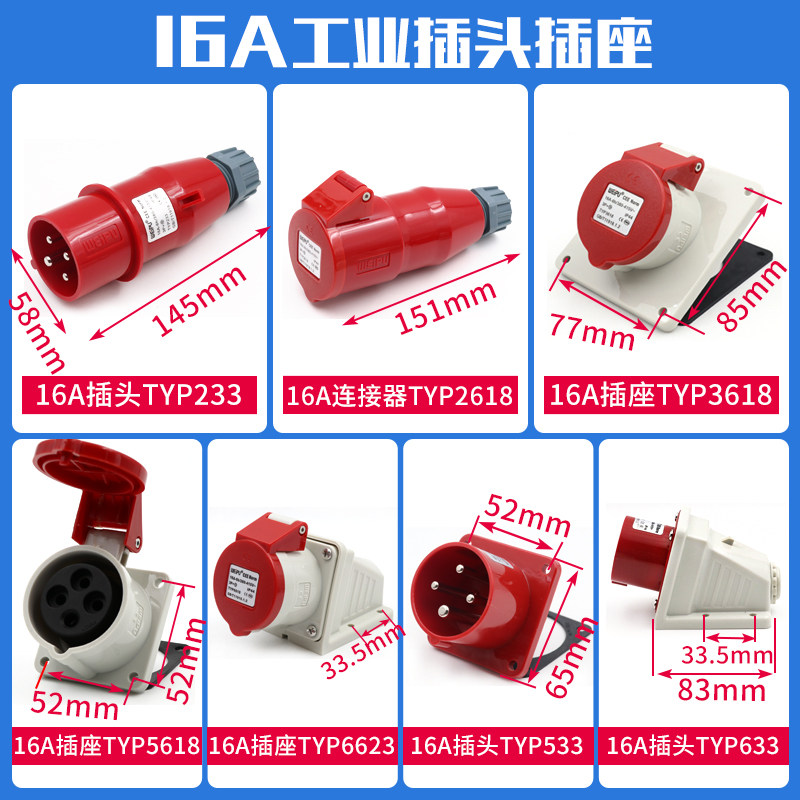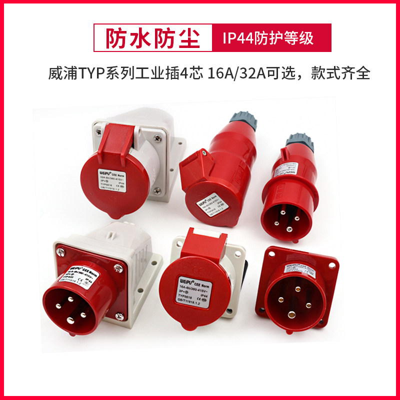 Weipu Industrial Plug Socket TYP233 Male connector 16A4 Core Ming fit 32A Dark fit mobile 283 three-phase