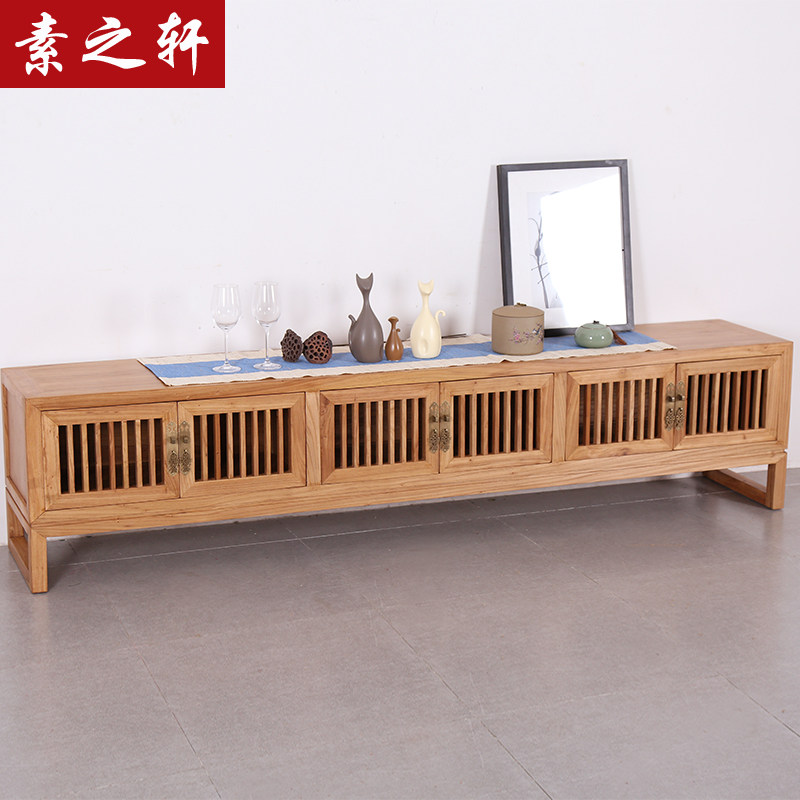 New Chinese old elm wood TV cabinet imitation ancient solid wood minimalist living-room storage accommodating lockers free of paint Zen