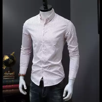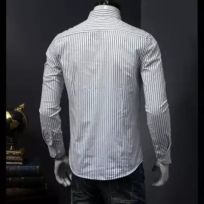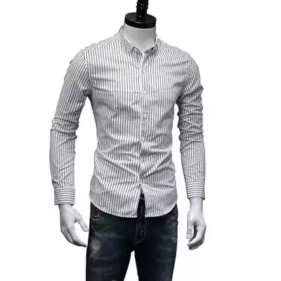 Autumn and winter personality vertical striped shirt men long sleeve autumn and winter clothes youth slim casual plus velvet hot clothes men