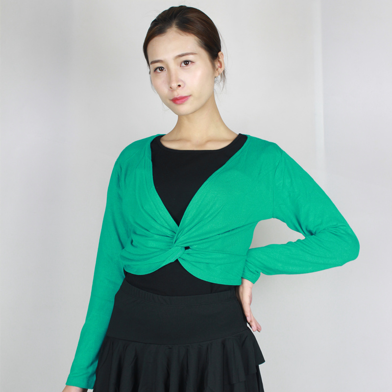 Soul dance dance practice suit shawl long sleeve knitted top women's square dance yoga dance autumn chest twist