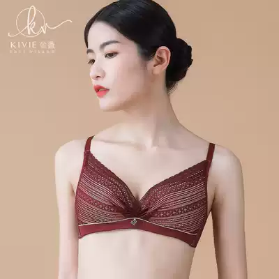 kivie Jin Wei Linglong underwear without steel ring lace underwear women's thin bra small chest gather sexy bra