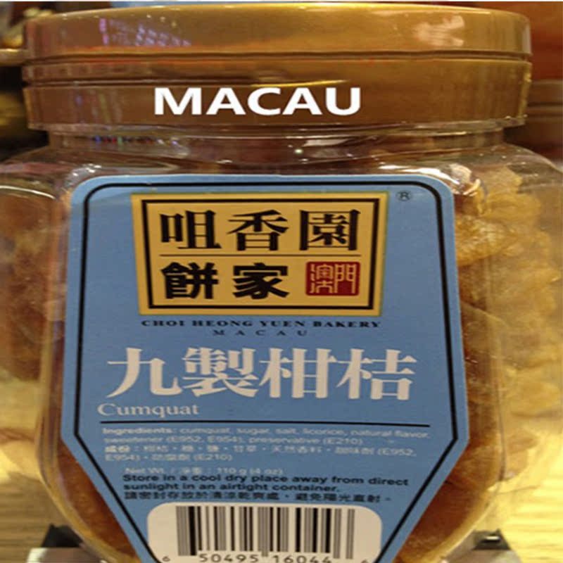 (New Year's Commodities Macau Specialty Souvenirs Snacks Snacks Food Zuixiangyuan Cake Home Jiuzhi Citrus 113g