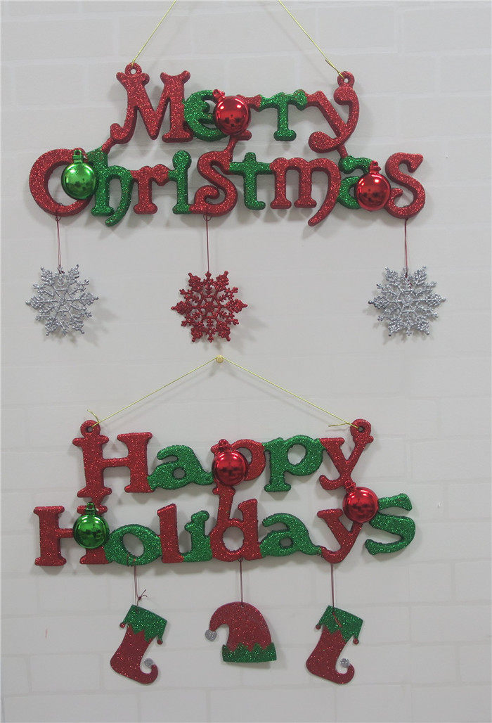 Christmas Alphabet Pendant CHRISTMAS WINDOW FESTIVAL PLACEMENT NEW YEAR HANGINGS RED GREEN SPARKLING PINK LETTERS CARD HANGING single