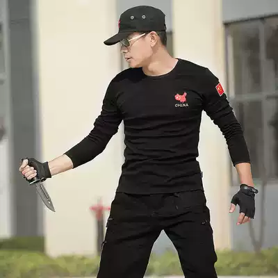 Dunlang autumn and winter outdoor new map long-sleeved cotton T-shirt top men's round neck tight T-shirt slim T-shirt