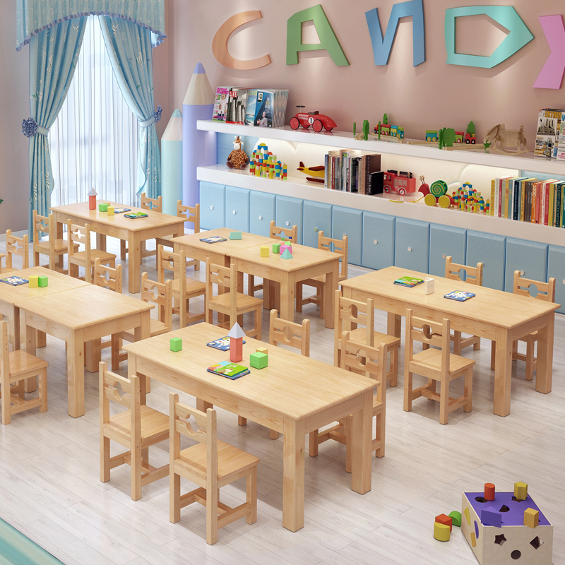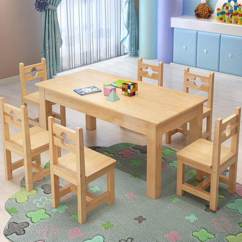 Solid wood Children's table and chairs Learning to write desk Students' desks suit Kindergarten small table square table pine wood table