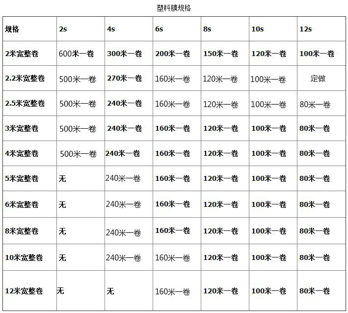 2 meters wide 2S a roll about 600 meters 2 meters wide 4S a roll about 300 meters 2 meters wide 6S a roll about 200 meters 2 meters wide 8S a roll about 150 meters 2 meters wide 10S a roll about 120 meters 2 meters wide 12S a roll about 100 meters 2.5 meters wide (2S-12S) Take a note thickness 3 meters wide 4S a roll about 240 meters 3 meters wide 6S a roll about 160 meters 3 meters wide 8S a roll about 120 meters 3 meters wide 10S a roll about 100 meters 3 meters wide 12S a roll about 80 meters 4 meters wide 4S a roll about 240 meters 4 meters wide 6S a roll about 160 meters 4 meters wide 8S a roll about 120 meters 4 meters wide 10S a roll about 100 meters 4 meters wide 12S a roll about 80 meters 2 meters wide 4S small roll (120 meters) Roll 5 meters wide (4S-14S) beat note thickness 6 meters wide (4S-14S) beat note thickness 8 meters wide (4S-14S) beat note thickness 10 meters wide (4S-14S) beat note thickness 12 meters wide (6S-14S) beat note thickness 2.2 meters wide (2S-10S) shoot note thickness