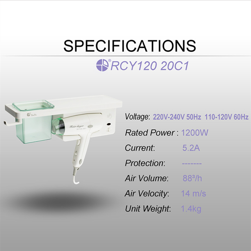 Letter Da RCY120-20C Wall-mounted Hairdressing HAIR DRYER HOOK CONTAINING BOX HOTEL FAMILY SPECIAL