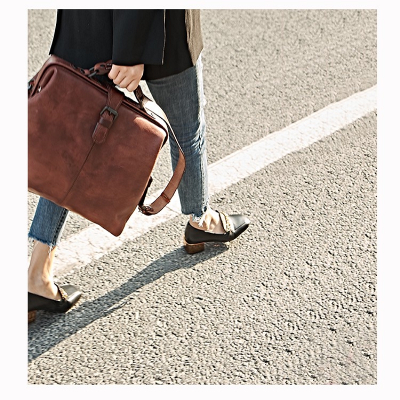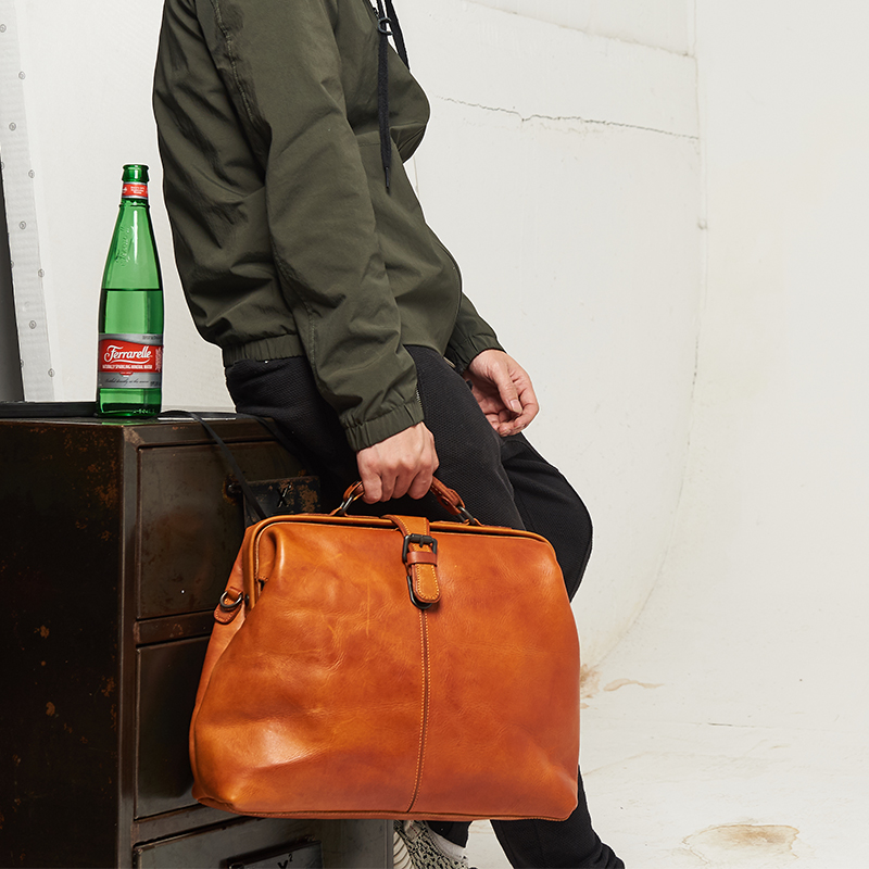 Half Van Original Handmade Head Layer Cow Leather Handbag Brief Practical Retro single shoulder bag briefcase genuine leather Inclined Satchel Bag