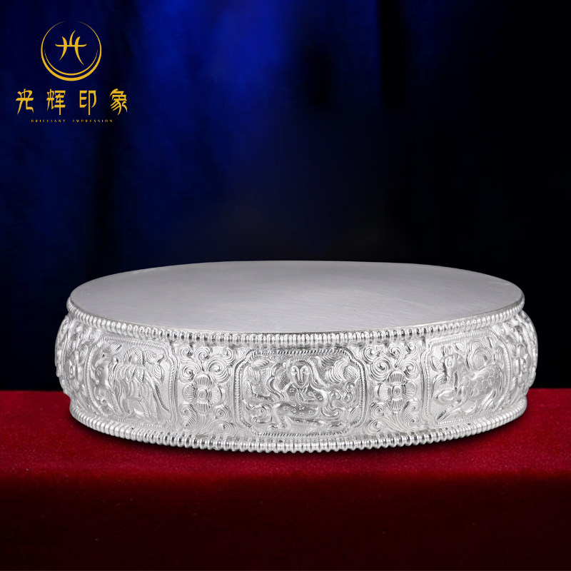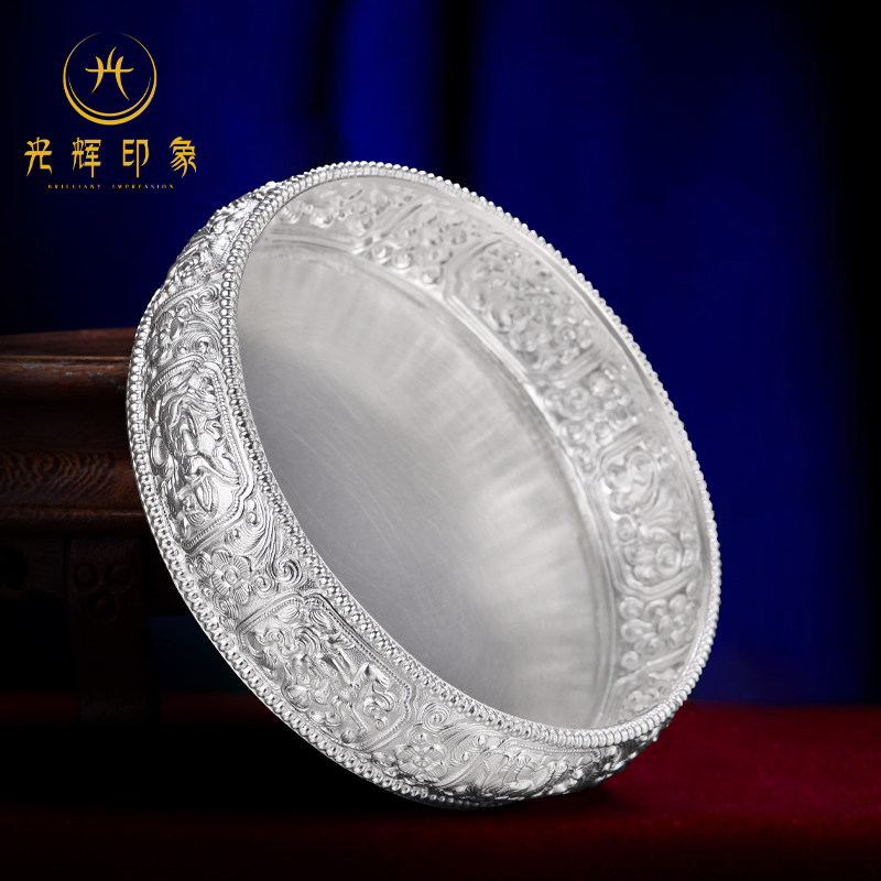 Glorious impression Tibetan S99 sterling silver Manza plate semi-handmade eight auspicious Manzaman tea Luo 10cm repair plate