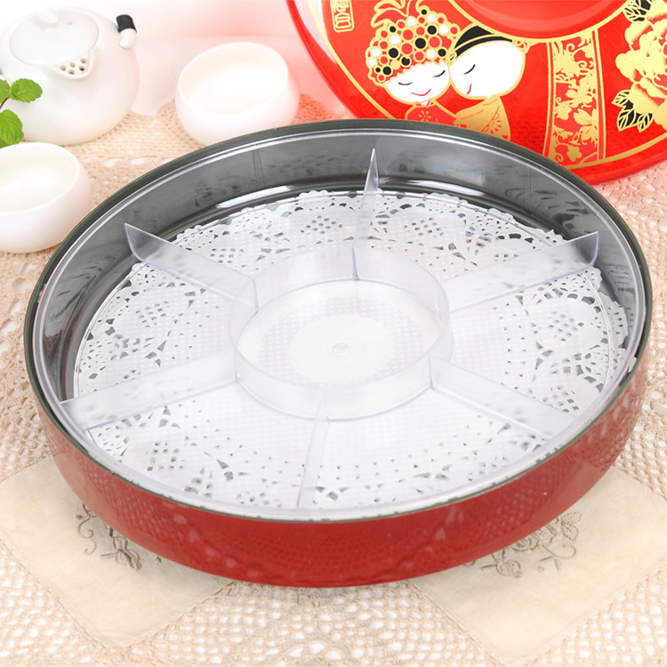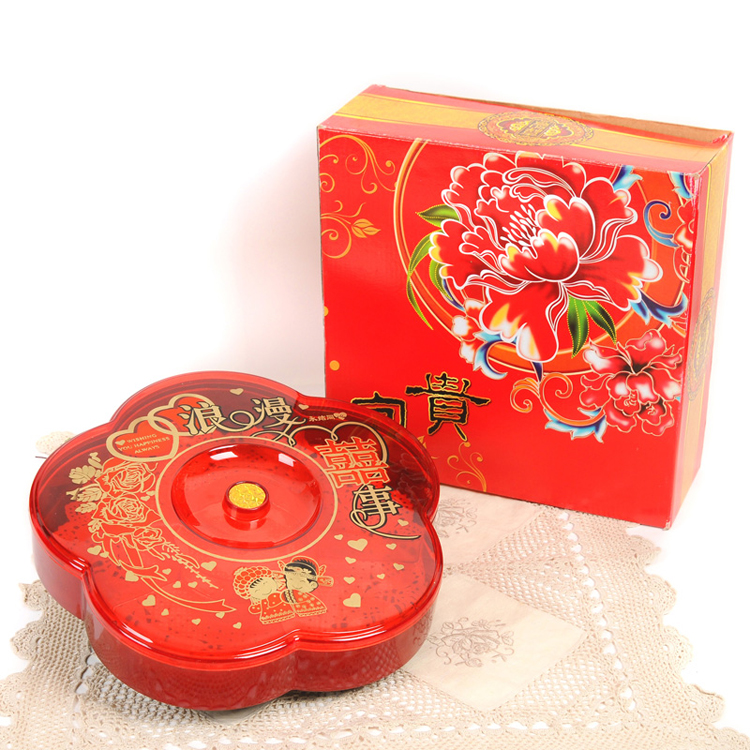 Divided fruit box rotating fruit plate large household dried fruit plate with lid plastic candy box melon seed plate wedding celebration red