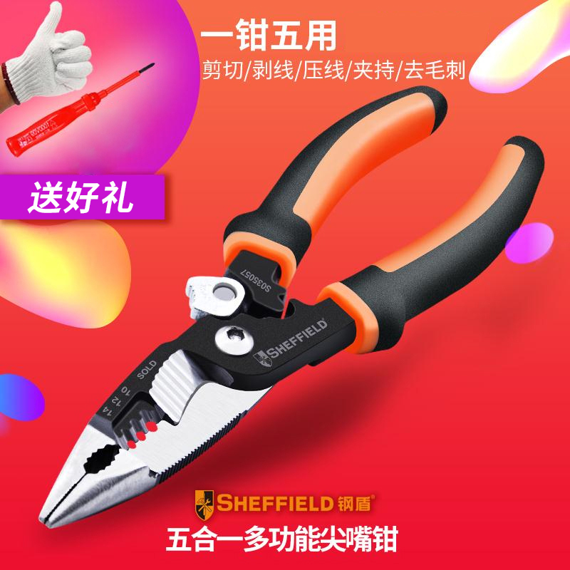 Steel shield stripping pliers multi-function electrician pliers special cable peeling fiber pulling fiber pulling wire breaking wire shearing tool tip nozzle pliers