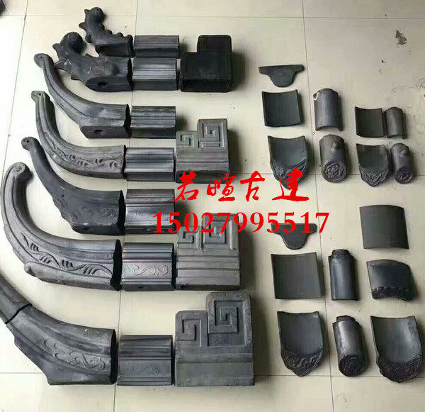 Ancient brick and tile green tile corner Bogu head is kissing the beast running beast Green tile gray tile ridge head