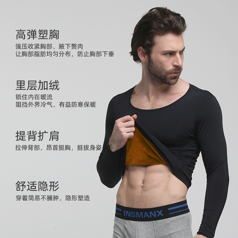 INSMANX men's body-shaping long-sleeved plus velvet autumn and winter warm corset underwear belly corset waist corset body shaping arm new