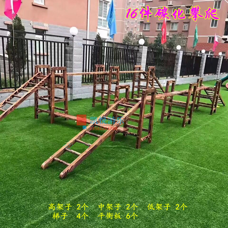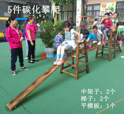 Kindergarten outdoor pine carbonized wood climbing ladder climbing frame Balance beam Children's physical and sensory integration training combination toy