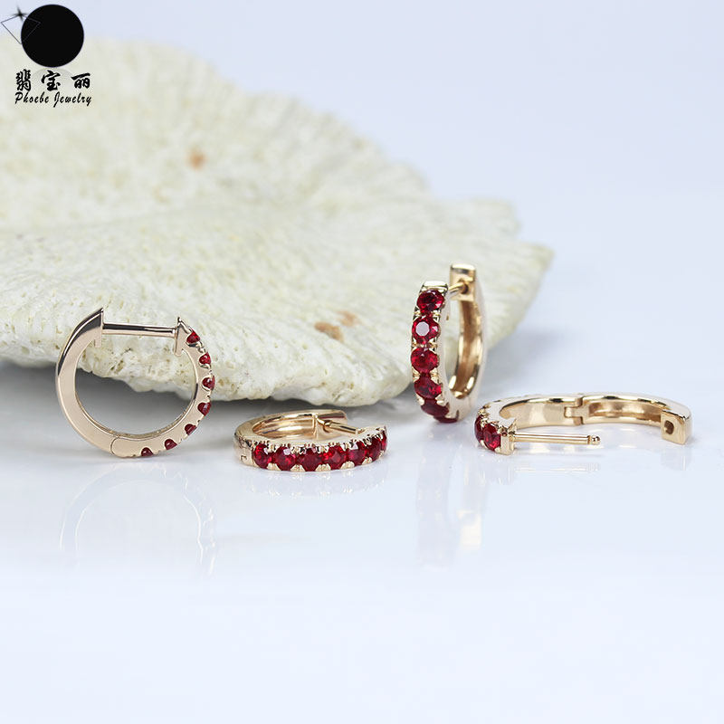 18K rose gold natural pigeon blood ruby earrings Color gold platinum sapphire group inlaid ear buckle ear clip female custom