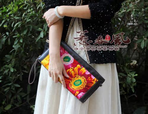 Original new fine genuine leather dual-use embroidered banquet handbag handmade with single shoulder diagonal satchel