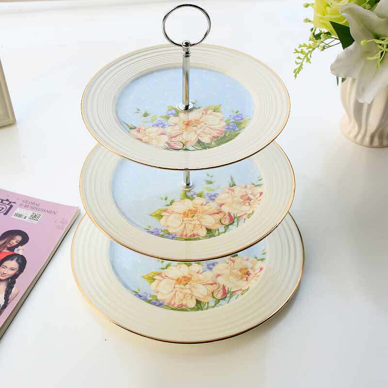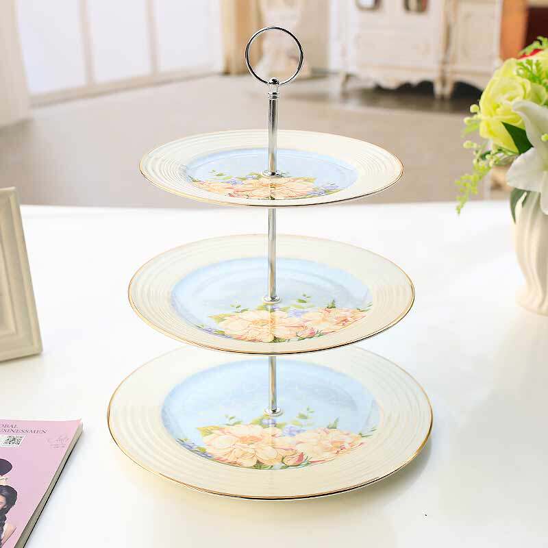 Yingchenda bone china fruit plate creative modern living room dessert table placed ceramic cake plate three-layer plate European style