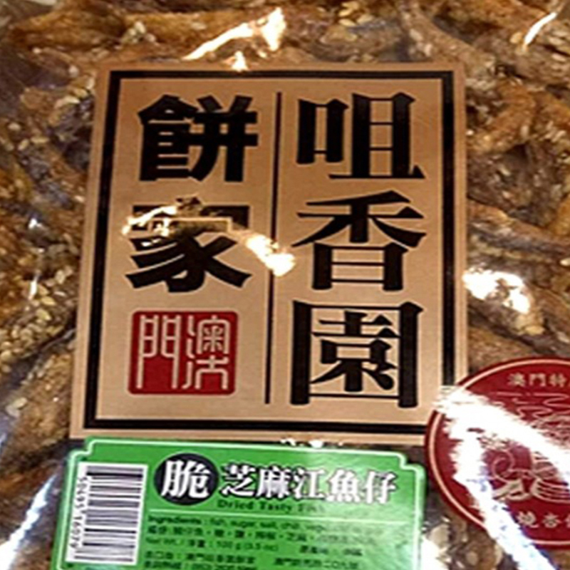 Year goods Macao special production hand letter food small snacks Sesame Garden Pie with Crisp Sesame Sesame River Fish 100g