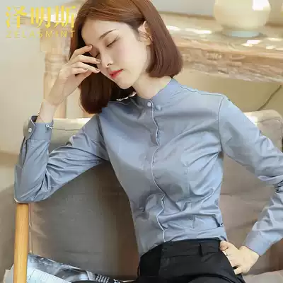White shirt women long sleeve work clothes professional collar plus velvet regular work gray shirt 2021 autumn and winter thick warm