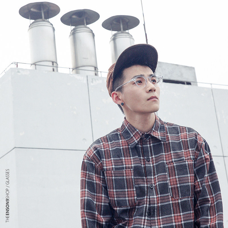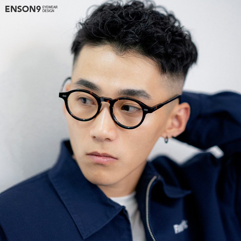 enson9 Japanese plate simple small round full-frame glasses for men and women retro transparent can be equipped with myopia flat mirror