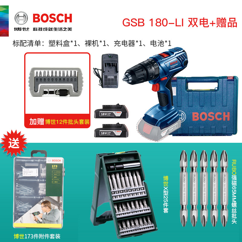 Bosch electric drill flashlight gun drill impact drill household GSB180LI electric screwdriver Dr. rechargeable tool