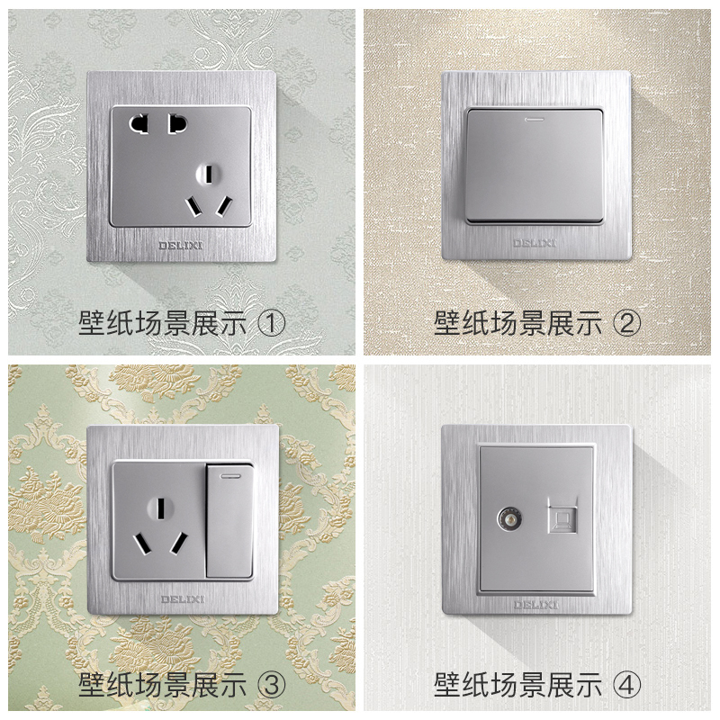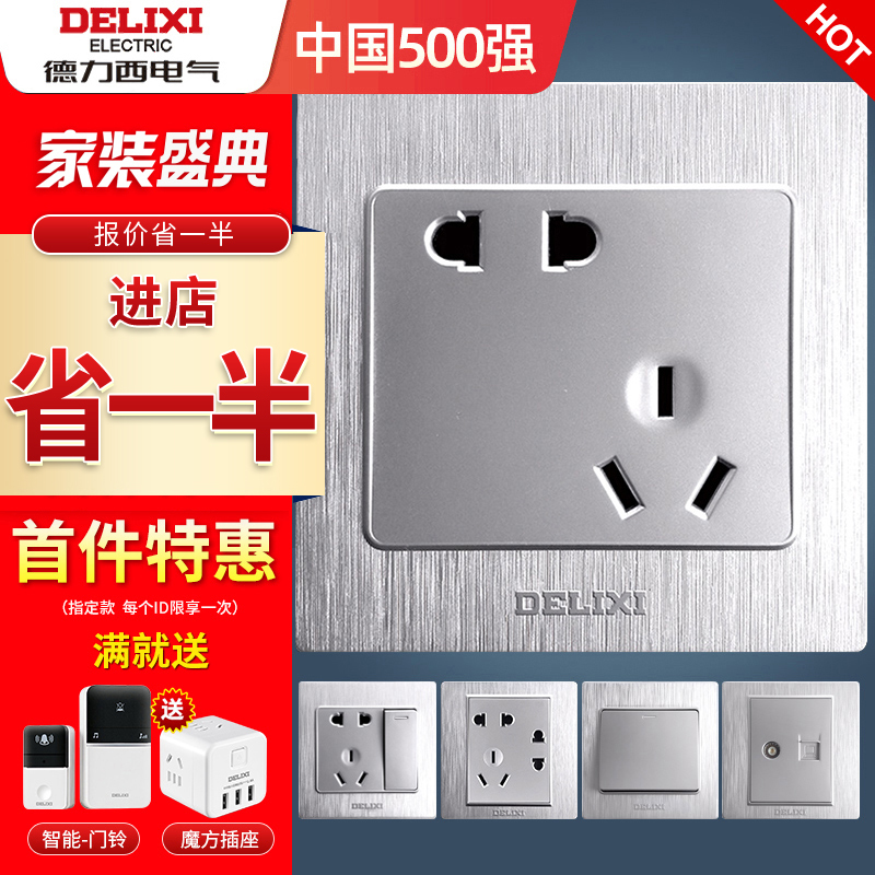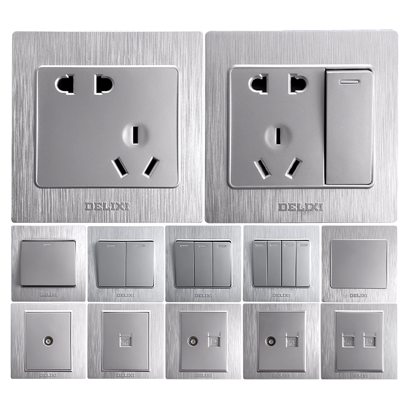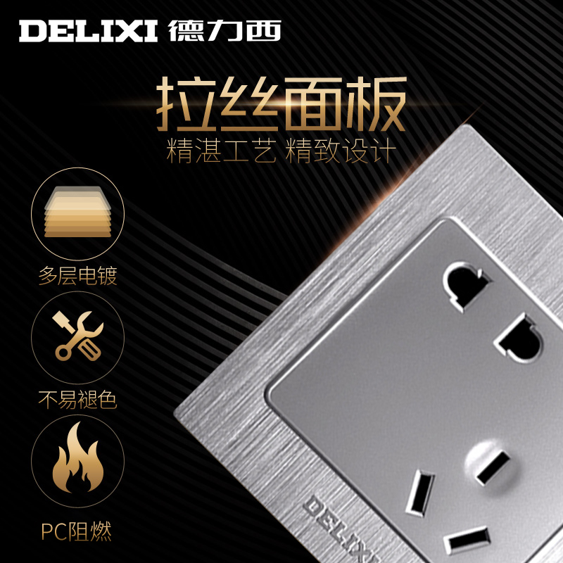 Delixi switch socket silver oblique five-hole socket household air conditioner 16A drawing surface board one open double multi-control 5 holes