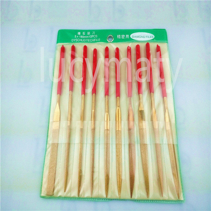 Promotional titanium-plated diamond file 180X5MM golden yellow plastic file diamond file flat file assorted file