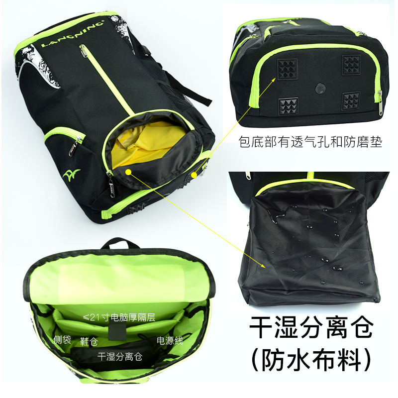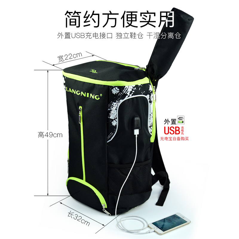 Lanning large capacity badminton bag shoulder backpack 3 men's and women's shoulder portable badminton racket bag multi-function