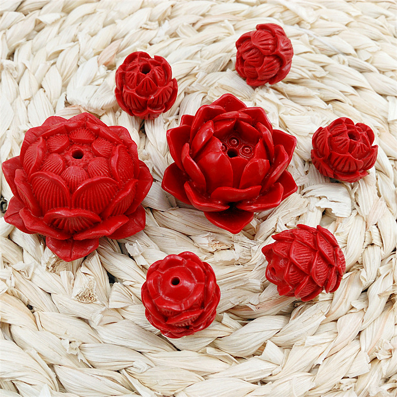 Cinnabar Carved Big Lotus Car Hanging Accessories Bracelet Accessories DIY Xingyue Bodhi Buddha Beads Cinnabar Pendant