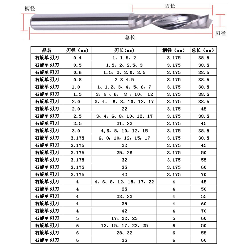 Tungsten steel single edge milling cutter aluminum with acrylic PVC plastic milling cutter CNC Engraving Knife 1 1 5 2 3175 4mm