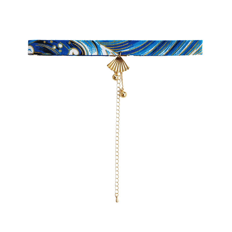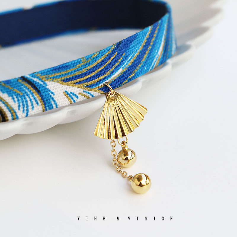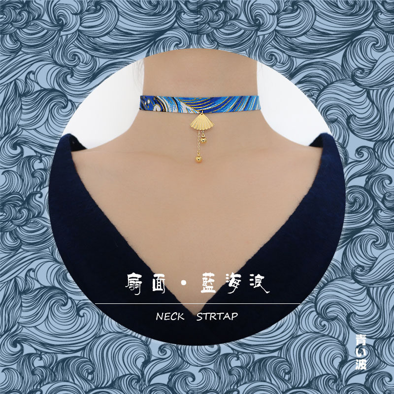 YIHE original design Japanese and Fengflong fan fan blue wave choker neck collar