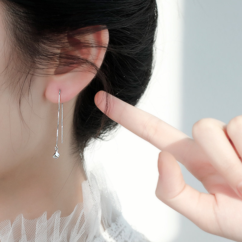 925 sterling silver earrings women sleep without taking off the earrings temperament simple earrings personality tassel long style ear chains