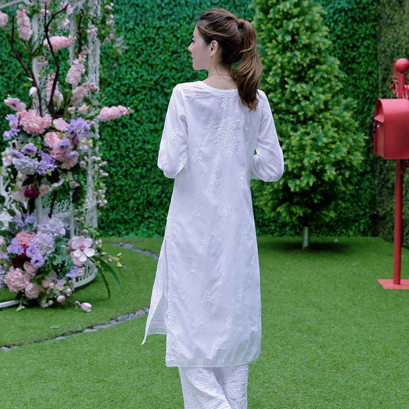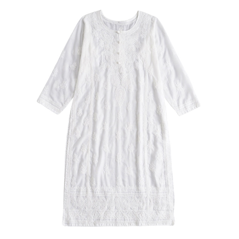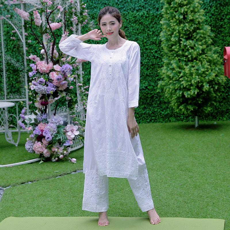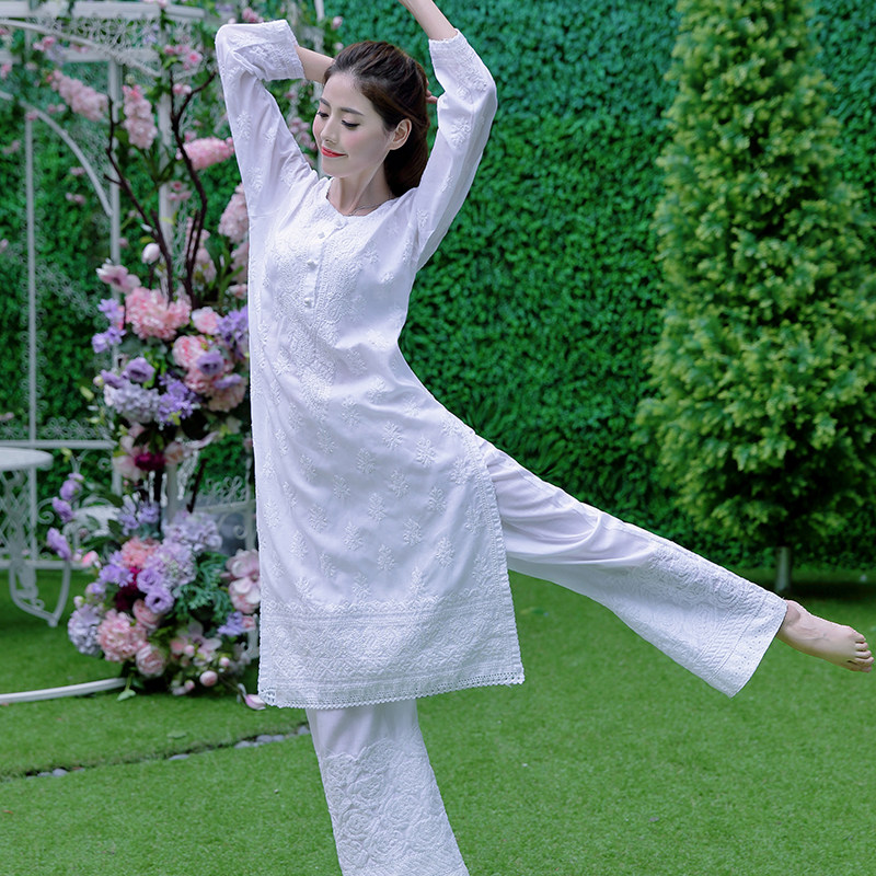 Indian Imported Yoga Suit Master Suit White Handmade Embroidered Long Gown Pure Cotton Spring Summer Authentic Suit Woman