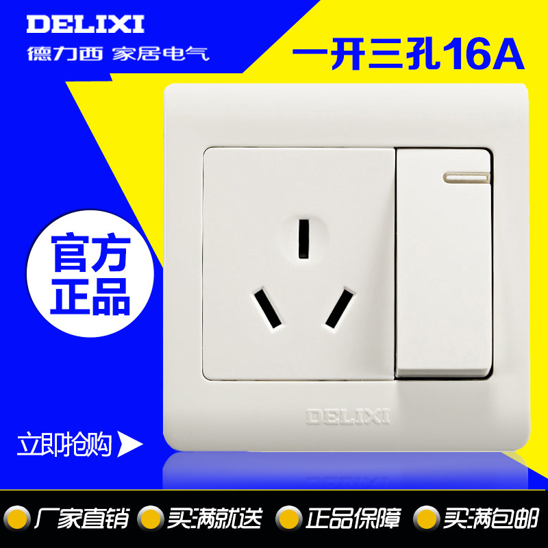 Delixi opened three - hole 16A socket 1 open double - controlled 3 - hole air conditioning socket switch Wall Power 86
