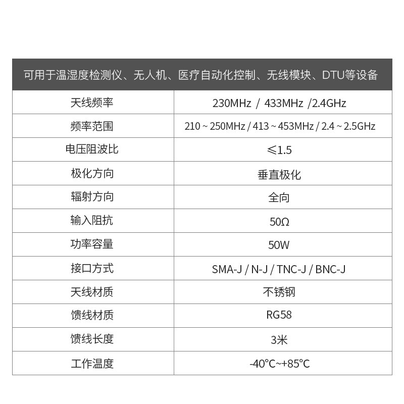 94cm (antenna) 300cm (feeder)