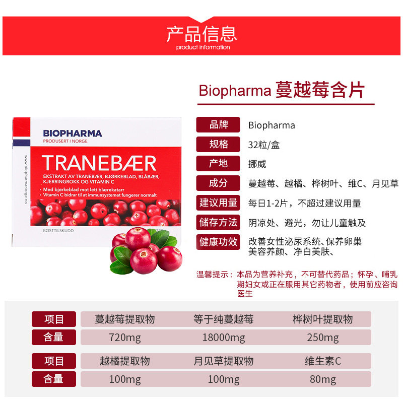 Norwegian BP Biopharma cranberry essence lozenge to maintain a net white skin