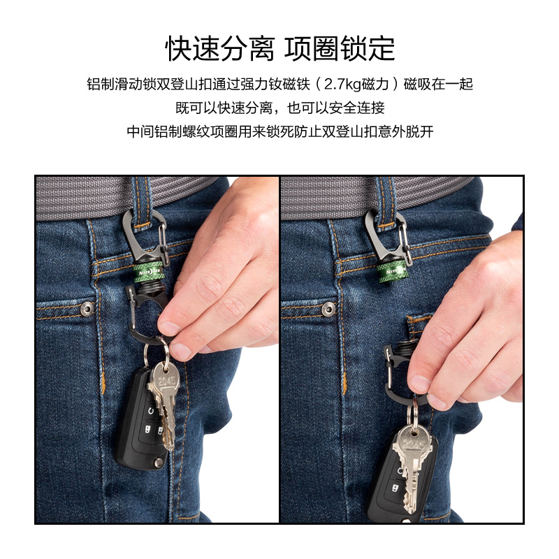NiteIze magnetic fast hanging multi-purpose key chain 360-degree rotation double D aluminum alloy hanging buckle hook