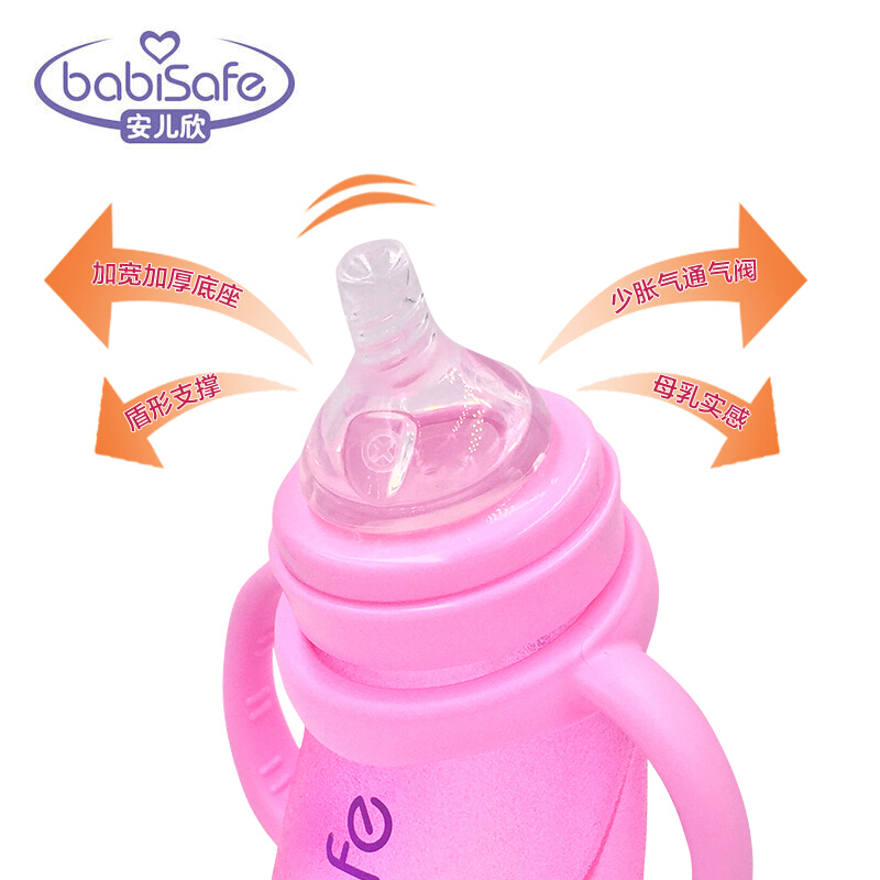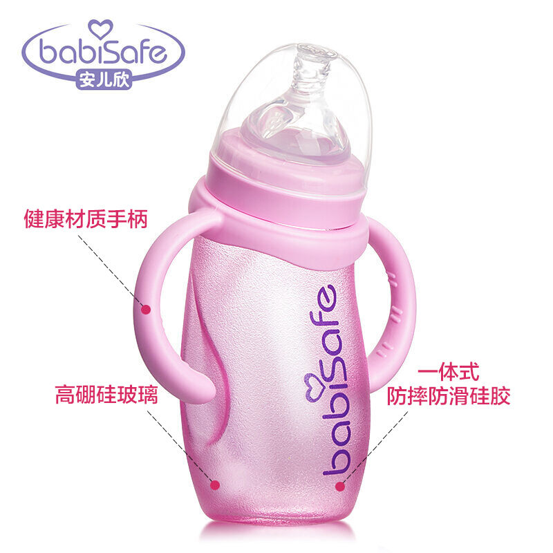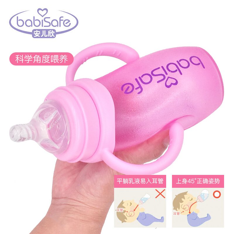Angerhin Wide Aperture Glass Milk Bottle Baby Suit Anti-Fall Anti-Flatuls Silicone Straw Milk Pot Handle Bespoke