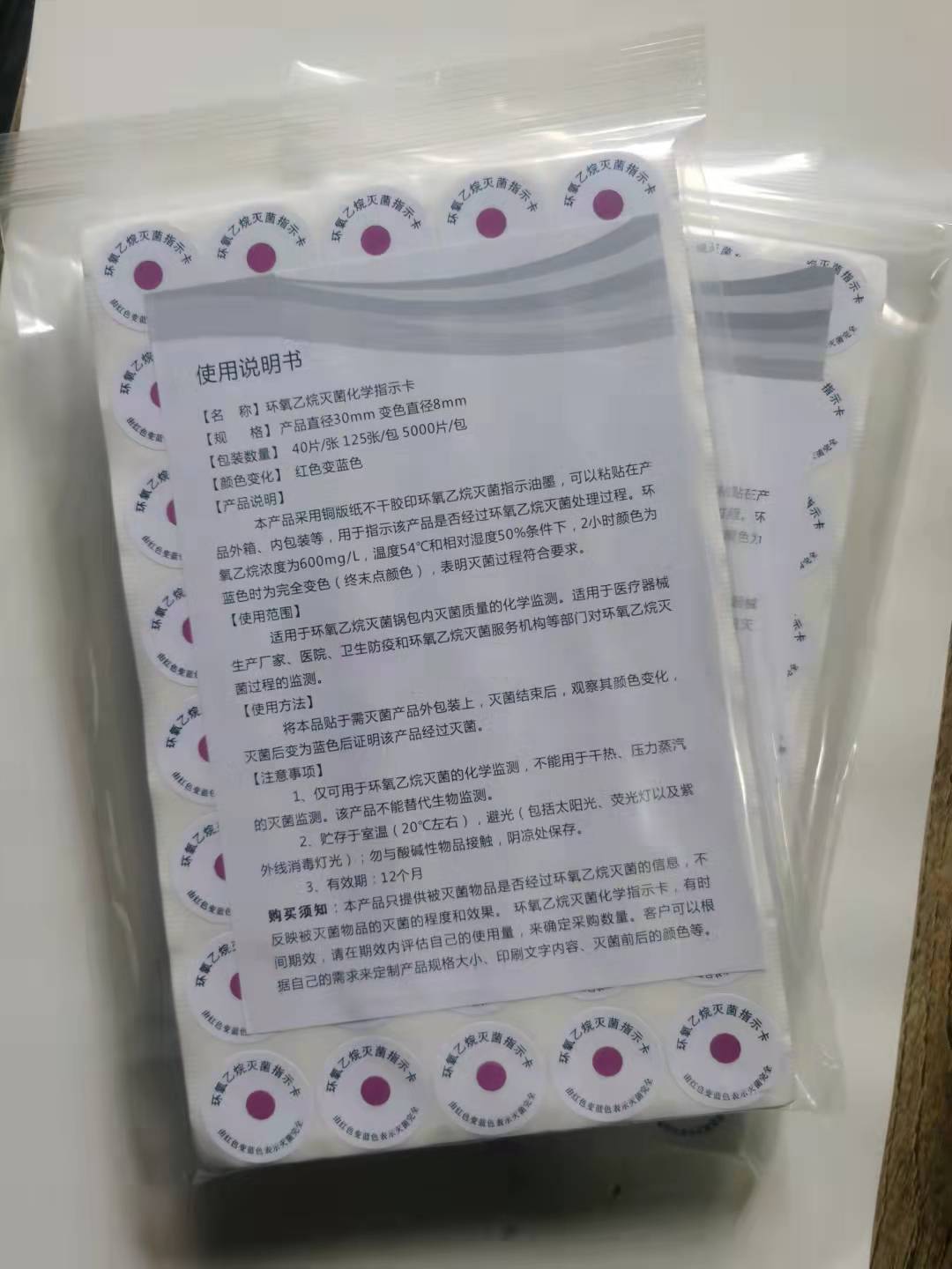 EO Ethylene Oxide Sterilization Indicator Card Ethylene Oxide Sterilization Chemical Indicator Card 5000 tablets