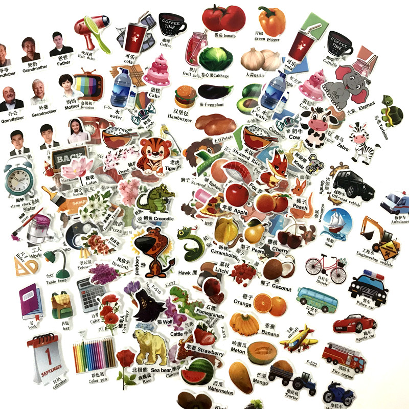Children learn English stickers in English single-word stickers early to teach cognitive stickers kindergarten baby learning toys