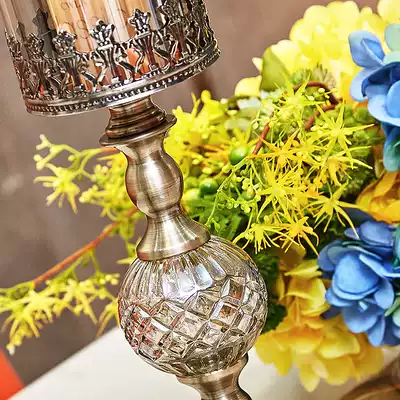 Light luxury American dining table metal candle holder model room soft decoration European home store glass candle holder ornaments