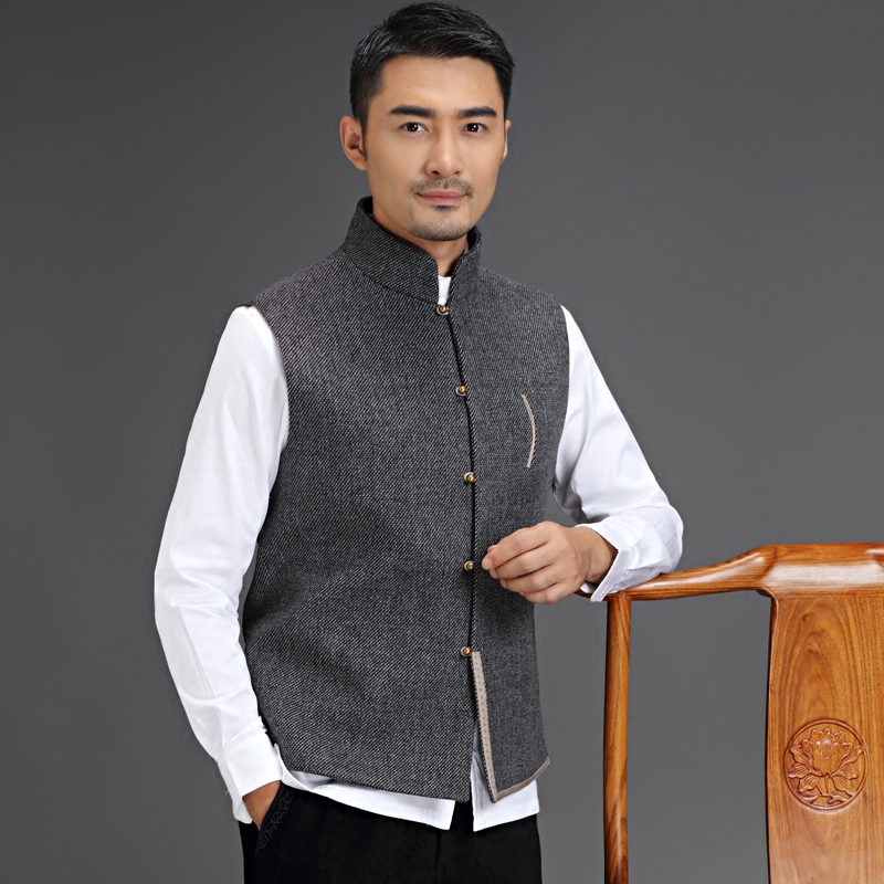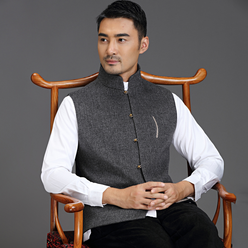 Tang assaults Chinese style Tang suit waistcoat waistcoat Chinese style wool vest Chinese wind autumn and winter casual waistcoat in old age disc buckle blouses