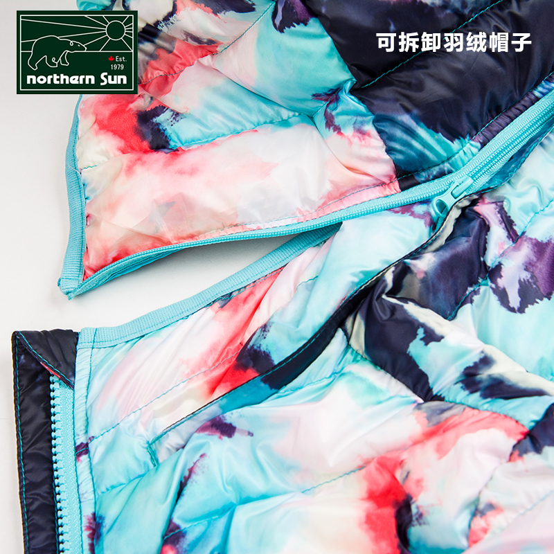 Canada North Mountain Outdoor Lightweight Down Jacket Women's 90% White Duck Down Ultra-Light Printing Removable Cap 7528