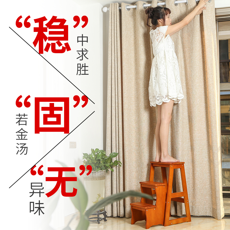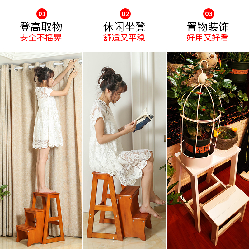 Solid wood ladder stool Multi-function household ladder Indoor thickened folding dual-use three-step small steps Stair chair climbing stool