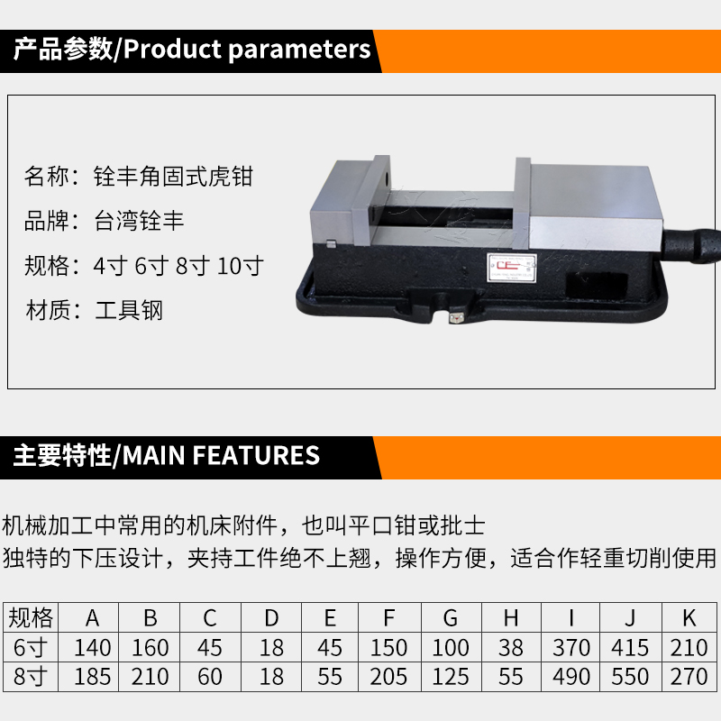 Taiwan Quanfeng brand 6 inch angle solid milling machine flat mouth pliers CNC fengfeng precision vise machine with table vise 8