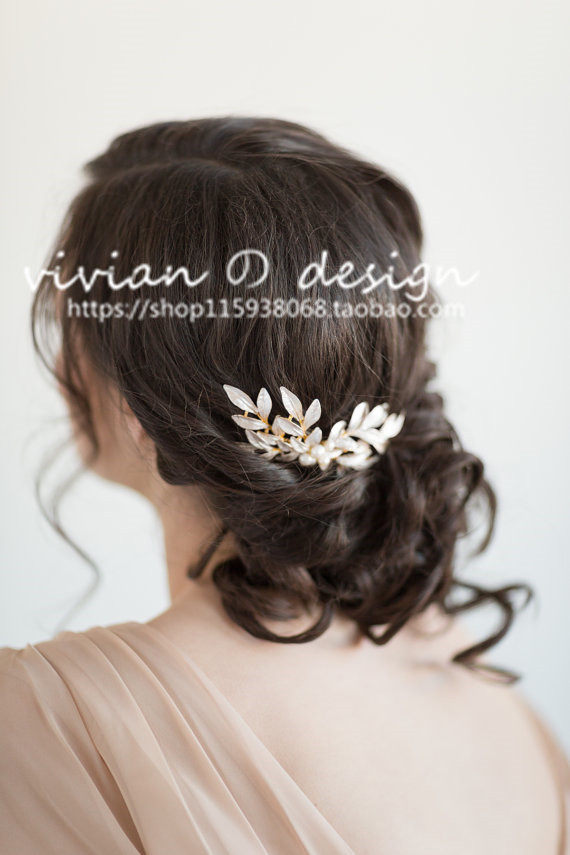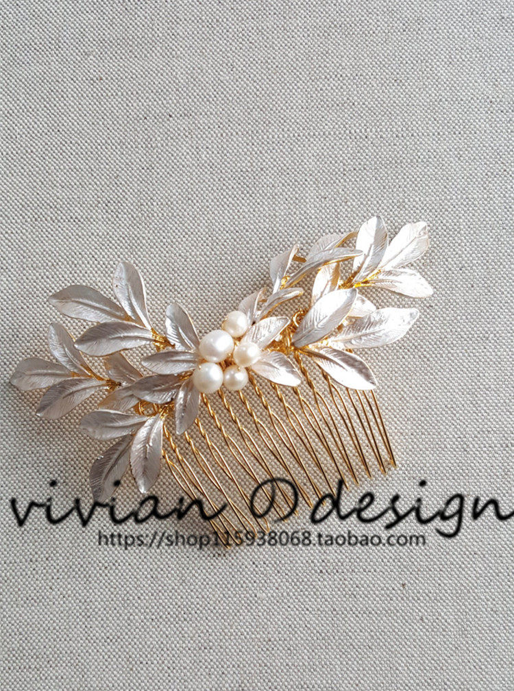 Vivian Design Korean-style European-style Freshwater Pearl Gold Leaf Comb Bridesmaid Photography Hair Accessories J1
