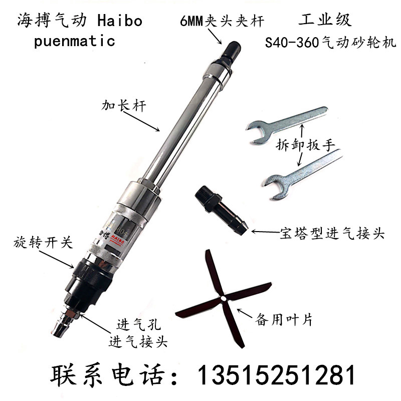 Taiwan Haibo S40A 360 460 580 780 Pneumatic Grinder Deep Hole Grinder Extended Air Grinder
