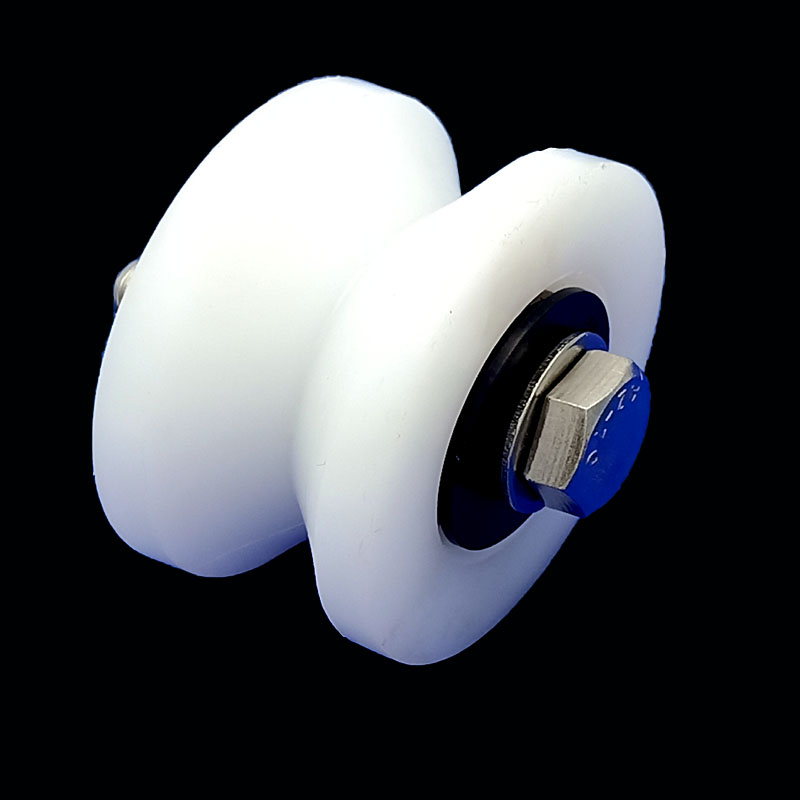 Triangular groove white nylon wheel flat groove white nylon wheel circular arc groove white nylon wheel shifting door wheel special stainless steel bearing single reinforced pure nylon flange steel flat groove track wheel