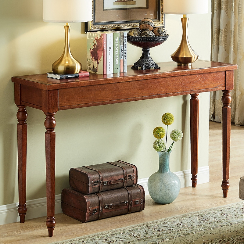 American-style solid wood entrance porch cabinet partition two sides porch table wall side narrow table sofa back cabinet European-style porch table